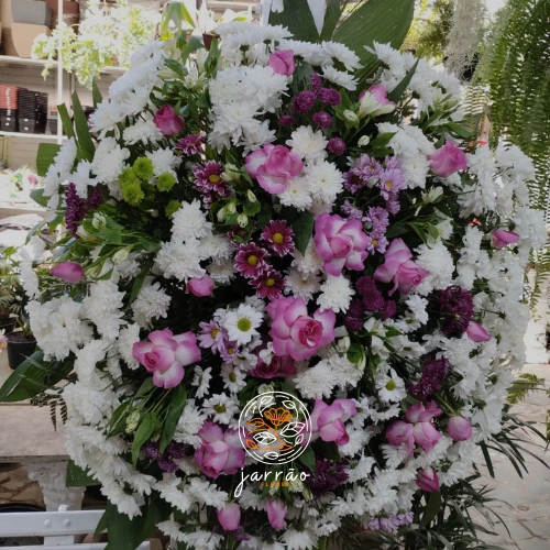 Produção de coroas e arranjos para funerais, feitos com flores frescas e seleção cuidadosa, transmitindo respeito e sensibilidade em cada detalhe.